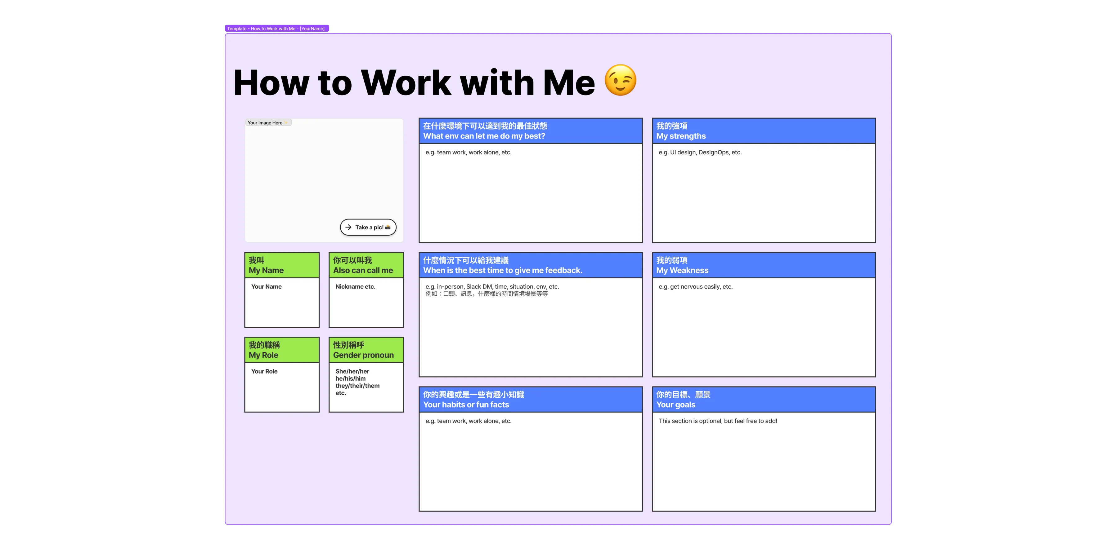 During the first round of onboarding training, we ingeniously introduced “How to Work with Me” with our newbie and all team designers with a workshop. This not only helped new hires understand how to effectively collaborate with everyone but also allowed everyone who has been working from home for a while to understand how to better communicate and provide feedback in a remote environment.