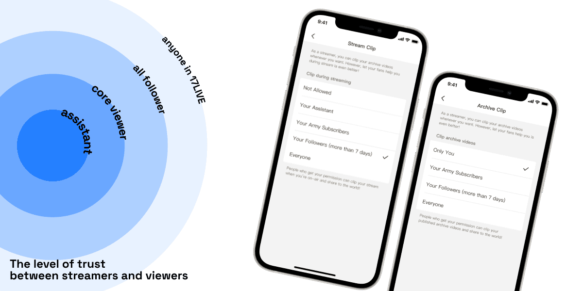 That decision only worked if the flow stayed operationally usable. So I also designed the first in-product video trimmer and opened clip creation to permissioned viewers as well as streamers, from both live sessions and archive playback. The goal was to turn recognition into action with as little extra work as possible.